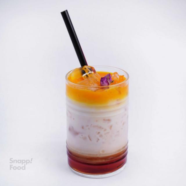 200 میلی لیتر، ترکیب مساوی اسپرسو 30% روبوستا، 70% عربیکا و شیر گرم، همراه با بادام زمینی