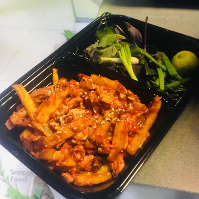 ۹۰ گرم تن ماهی، سیب زمینی، طعم دار شده با کره و ادویه، قارچ طعم داره، شده و پیاز