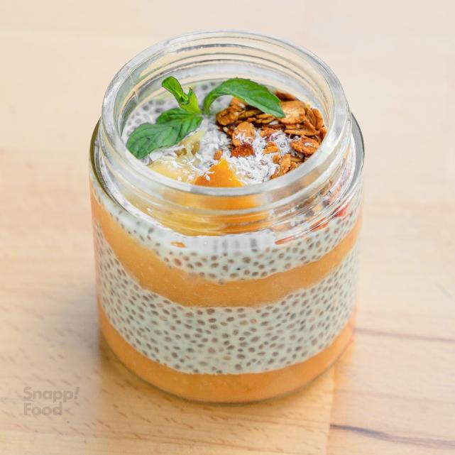 دانه چیا، شیر گیاهی، انبه تازه، گرانولا