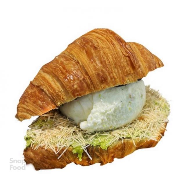 کمبو آیس ماچا لته و کروسان بیکن و تخم مرغ نیمرو