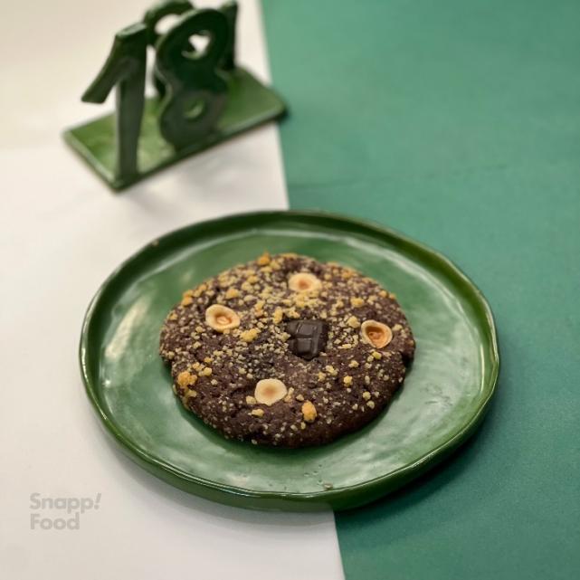 یک عدد کوکی شکلات فندق همراه تکه های فندق