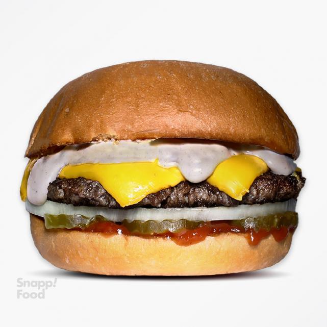 یک عدد برگر دست ساز گوشت گوساله 115 گرمی، 2 عدد پنیر زرد آمریکایی، سس مخصوص، پیاز کاراملی، خیارشور، کاهو، گوجه، نان برگر تست شده