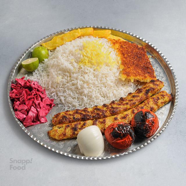 چلو کباب کوبیده مرغ با برنج ایرانی