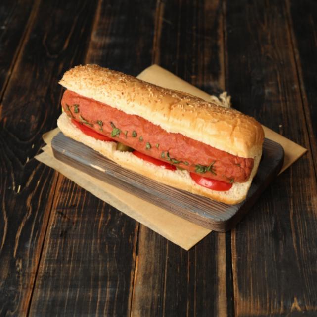 نان باگت، هات داگ، خیارشور، گوجه، سس مخصوص، جعفری