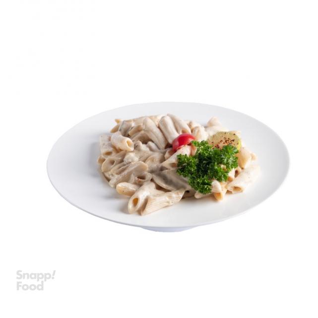 یک نفره، 150 گرم سینه مرغ گریل شده تکه ای، پاستا پنه، قارچ، پنیر پارمسان، سس آلفردو