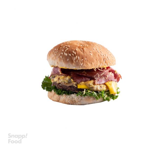 یک عدد برگر دست ساز گوساله 150 گرمی، 2 ورق بیکن گوشت 97٪، یک ورق پنیر گودا، سس مخصوص، نان مک
