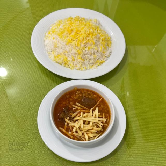 250 گرم خورشت، 2 تکه گوشت گوساله، 450 گرم مخلوط برنج ایرانی و خارجی