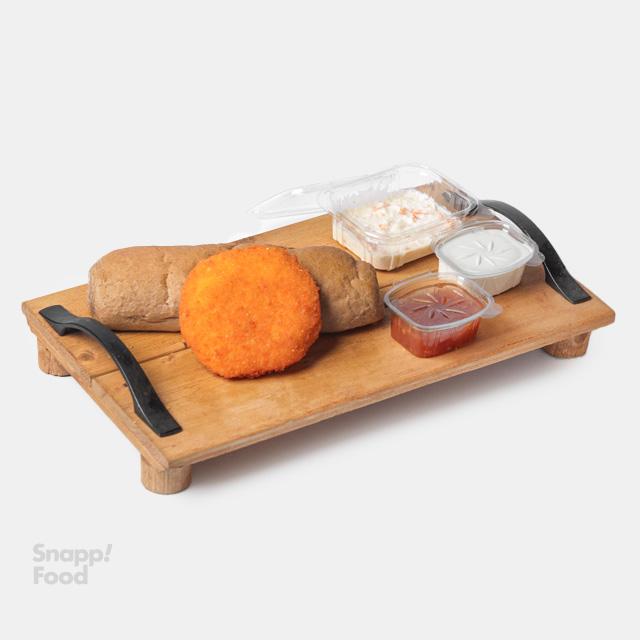 ۲۰۰گرم فیله مرغ، پنیر، نان لقمه، سالادکلم، ۲عدد سس مخصوص