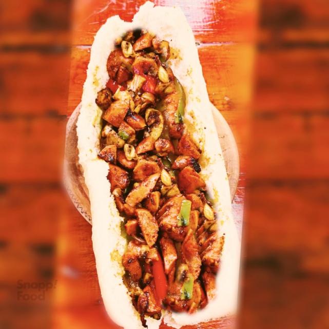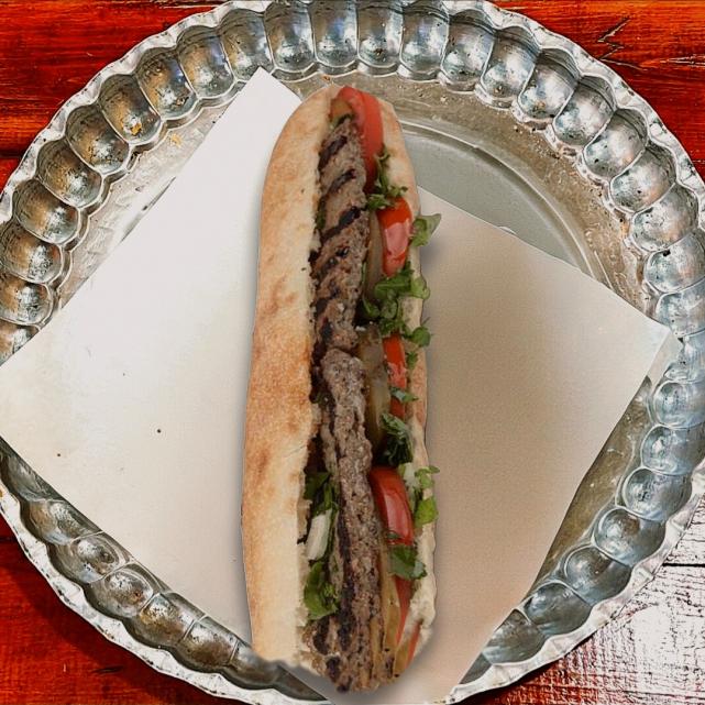 سوسیس بندری ، کاهو ، خیار شور ، گوجه ، سس مخصوص