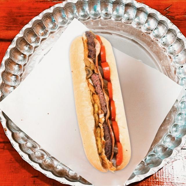 یک عدد برگر دست ساز گوشت گوساله 120 گرمی، یک ورق پنیر گودا، 7نیر پیتزا، کاهو، گوجه، خیارشور، نان به انتخاب شما