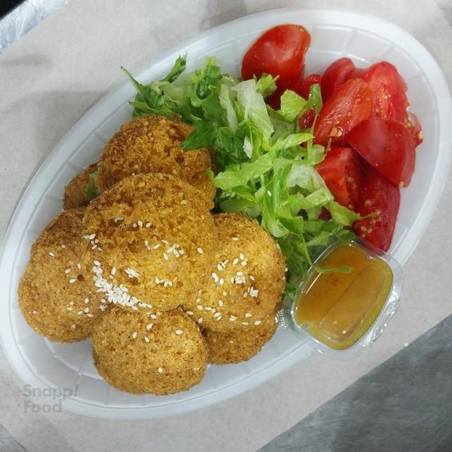 فلافل، کاهو، گوجه، خیارشور، نان باگت