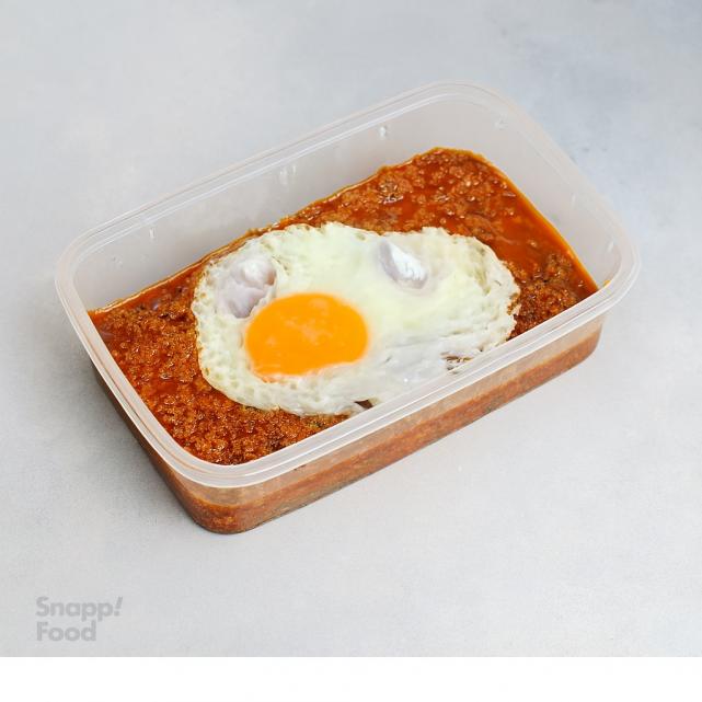 250 گرم خورشت، شامل 60 گرم گوشت گوساله، بادمجان سرخ شده، 470 گرم برنج ایرانی، دورچین: نان لواش، پیاز
