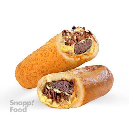 120 گرم گوشت گوساله رست بیف، پنیر پیتزا، چیپس، سس مشروم ، سس خردل،بدون دورچین