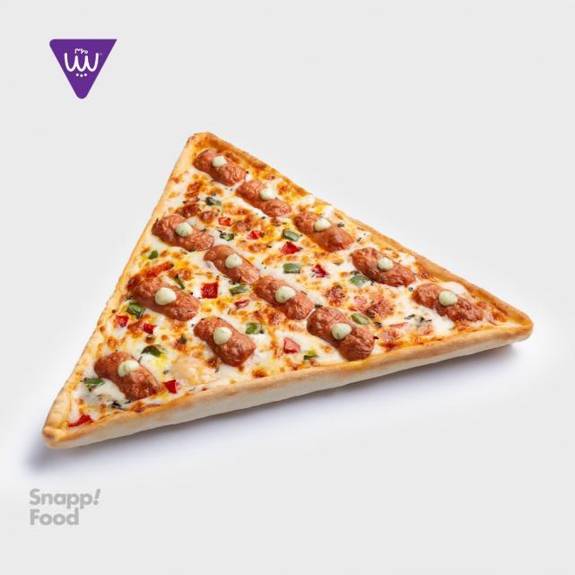 خمیر پیتزای آمریکایی 28 سانتی متری، سوسیس کوکتل ژاپنی، قارچ، گوجه، فلفل دلمه‌ای، سس مخصوص، پنیر پیتزای مخصوص، سس بیانز، ادویه‌ مخصوص پیتزا