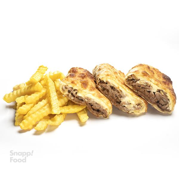 رست بیف (ران گوساله)، سس آلفردو، پیاز ، پنیر مخصوص، سیب زمینی