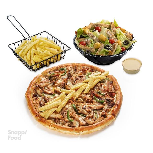 پیتزا مرغ 30 سانتی، سالاد سزار با مرغ گریل، سیب زمینی