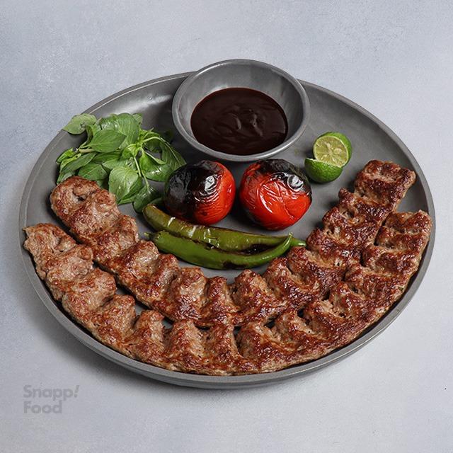 یک سیخ کباب راستە برە گوشت گوسفندی، ذغالی 380 گرمی، یک سیخ کباب شیشلیک دندە گوسفندی ذغالی 500 گرمی، 2 سیخ کباب لقمە گوشت گوسفندی ذغالی 250 گرمی، یک سیخ جوجە کباب بدون استخوان ران مرغ ذغالی 500 گرمی، یک سیخ جوجە کباب با استخوان ذغالی 800 گرمی، دورچین: فلفل کبابی، ریحان تازە، لیموترش، سس انار، سس باربیکیو، نان تافتون داغ، گوجە کبابی
