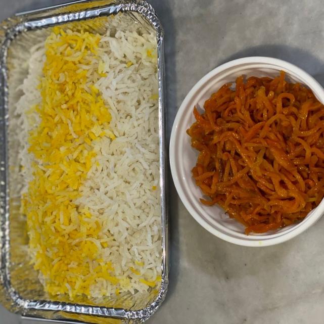 یک پرس خورشت هویج، 350 گرم برنج ایرانی، بدون گوشت