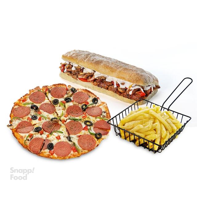 پیتزا مخلوط 23 سانتی، ساندویچ دونر گوشت، سیب زمینی